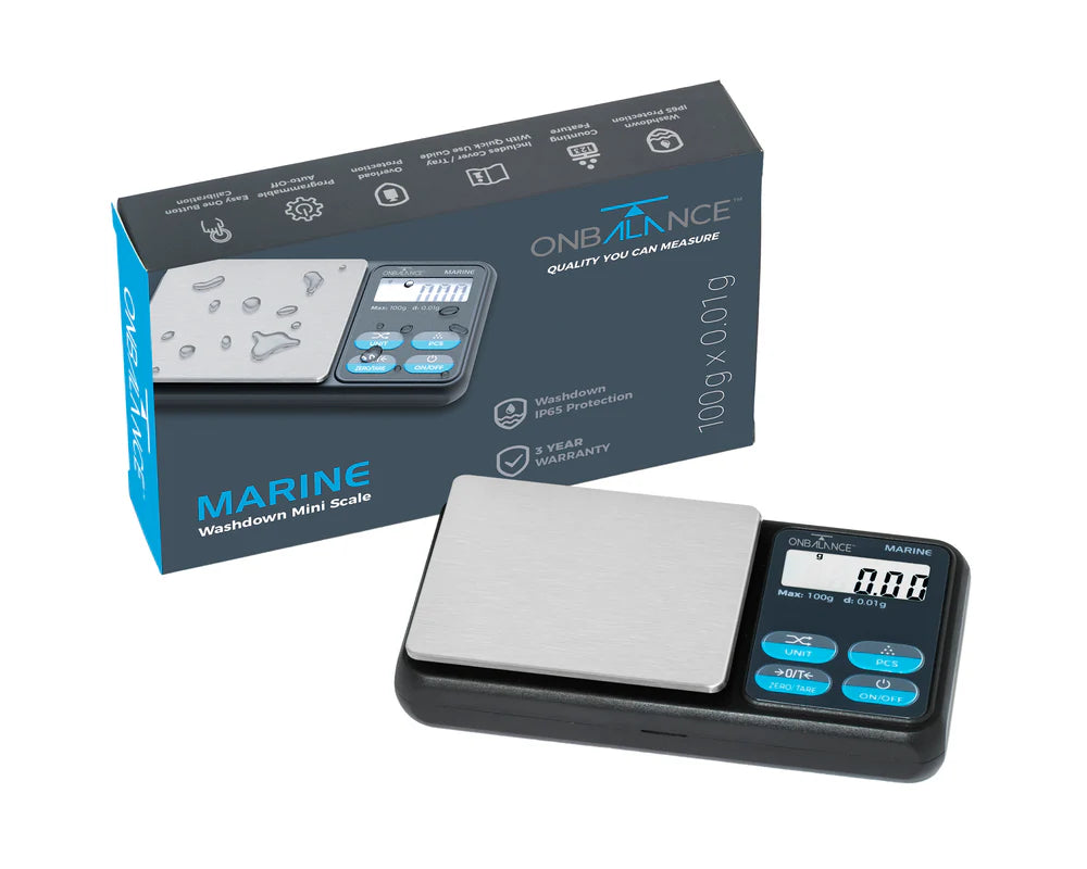 The Marine is the World's First IP-65 Rated miniscale brought to you by On Balance. This scale has been tested in an independent UK laboratory and is rated IP65 for water and dust ingress protection. Weighing a sticky or otherwise messy product? No problem for the Marine - when you're done simply wash it under the tap! The Marine weighs up to 100g with a 0.01g resolution.