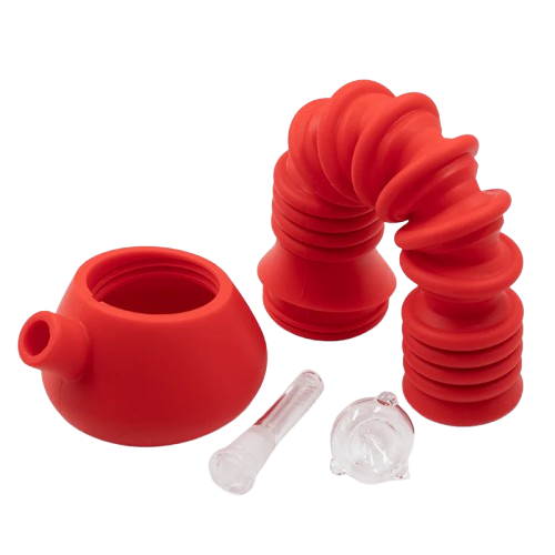 You’ve never pulled from a silicone piece like this. If straws had a god, this would be it. Extending from a respectful 26cm to a jaw dropping 54cm, if placed right, you won’t even need to lean over or move from a reclined position to smoke from this. Great for passing around or holding as your friend takes a hit across the table, there’s nothing more fun than a giant straw bong, which makes for an awesome bragging piece. Its silicone build makes it highly durable and just about unbreakable, so it’s great as a traveler, to chuck in a backpack, take camping, or if you’re just a clumsy unit who is prone to breaking glassys. Made from food grade silicone with a glass cone, the bong completely disassembles for easy cleaning.